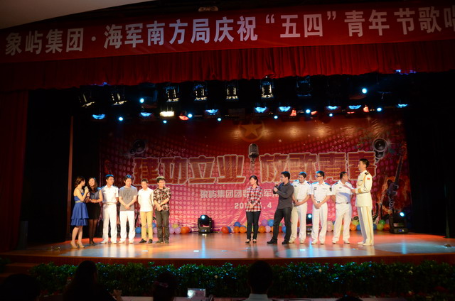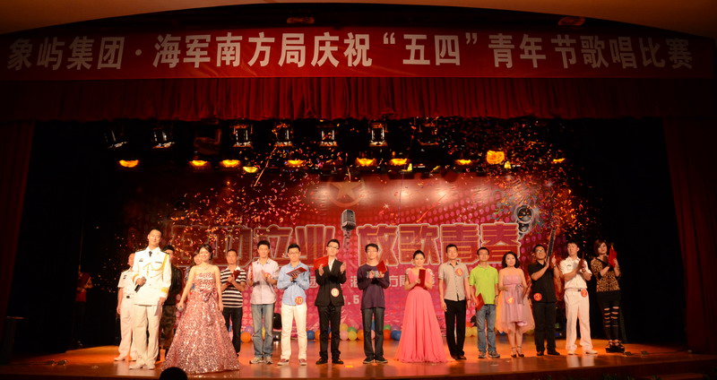 五月的花海,飛揚的青春!為慶祝中國共產(chǎn)主義青年團成立90周年,象嶼集團團委和海軍南方局團委共同舉辦 “建功立業(yè),放歌青春”慶祝“五四”青年節歌唱比賽,來(lái)自?xún)蓚€(gè)單位的16名決賽選手登臺獻藝,在廈公司領(lǐng)導、員工,以及共建單位海軍南方局官兵近三百五十人到場(chǎng)吶喊助威。