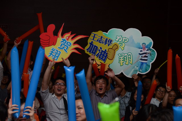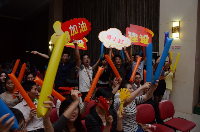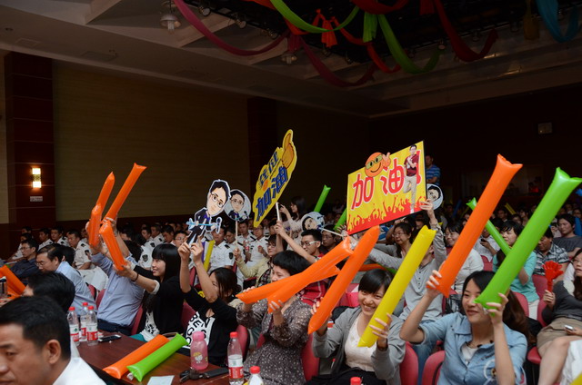 在激揚的歌曲聯(lián)唱《五月的花?!分?,歌唱比賽正式開(kāi)始。16名選手按組別輪流登場(chǎng),現場(chǎng)精彩萬(wàn)分。歌聲或激蕩高昂,或宛轉悠揚,或徐徐如風(fēng),或渾厚有力;表現力或動(dòng)感十足,或動(dòng)靜相宜,或幽靜宜人;曲風(fēng)各異,或熱辣奔放,或溫暖抒情,或自然歡快,或懷舊悠揚。啦啦隊陣容也不容小覷,加油牌、口哨、熒光棒一應俱全,或歌唱伊始吶喊助威,或伴隨著(zhù)歌聲興奮地揮舞著(zhù)手臂,更有甚者激動(dòng)地走到臺上為選手喝彩,臺上臺下照相印襯、融為一體。期間,軍企拉歌、擊鼓傳花等活動(dòng)環(huán)節也將比賽推向一個(gè)又一個(gè)高潮。