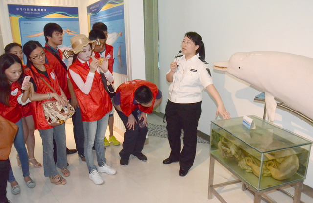 活動(dòng)中,志愿者們都很激動(dòng),紛紛拿出手機和心愛(ài)的海豚拍照合影,大家通過(guò)喂食和撫觸,與海豚親密互動(dòng),真真切切地體會(huì )到人與海洋生活和諧共處的那種愉悅和幸福。隨后在科普館內,海洋漁業(yè)局的講解員為志愿者們詳細介紹了關(guān)于中華白海豚和海洋保護的相關(guān)知識,志愿者們認真傾聽(tīng),踴躍提問(wèn),與講解員展開(kāi)了熱烈的互動(dòng),收獲良多。