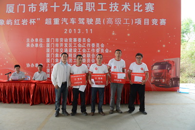 11月4日,由廈門(mén)市勞動(dòng)競賽委員會(huì )主辦,象嶼集團工會(huì )承辦的廈門(mén)市第十九屆職工技術(shù)比賽超重型汽車(chē)駕駛員(高級工)項目A類(lèi)比賽,在象嶼保稅區二期落下帷幕。來(lái)自廈門(mén)市全行業(yè)具有規模的16家港口集裝箱運輸企業(yè)的55名高手報名參賽,代表廈門(mén)4000多名從業(yè)司機爭奪行業(yè)“狀元”稱(chēng)號。